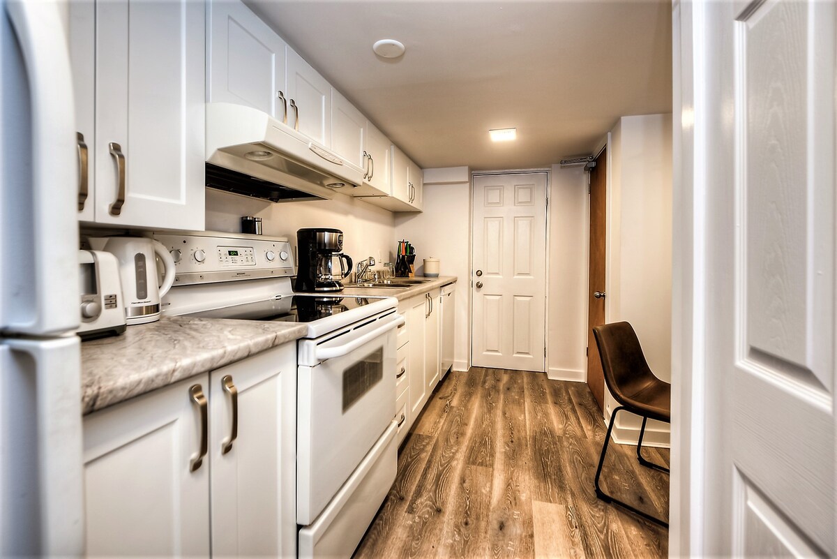 Welcome to our luxurious garden suite with a private outdoor hot tub, perfect for relaxation! Located in downtown Kitchener, it’s steps from cafes, bakeries, restaurants, and the weekend farmers market. This 2Bed/2Bath suite includes a fully equipped kitchen, washer/dryer, and stunning new flooring. With quick access to highways, transit lines to colleges and universities, and the Iron Horse Trail, it’s the ideal space for families, workers, and students. Parking is also included!