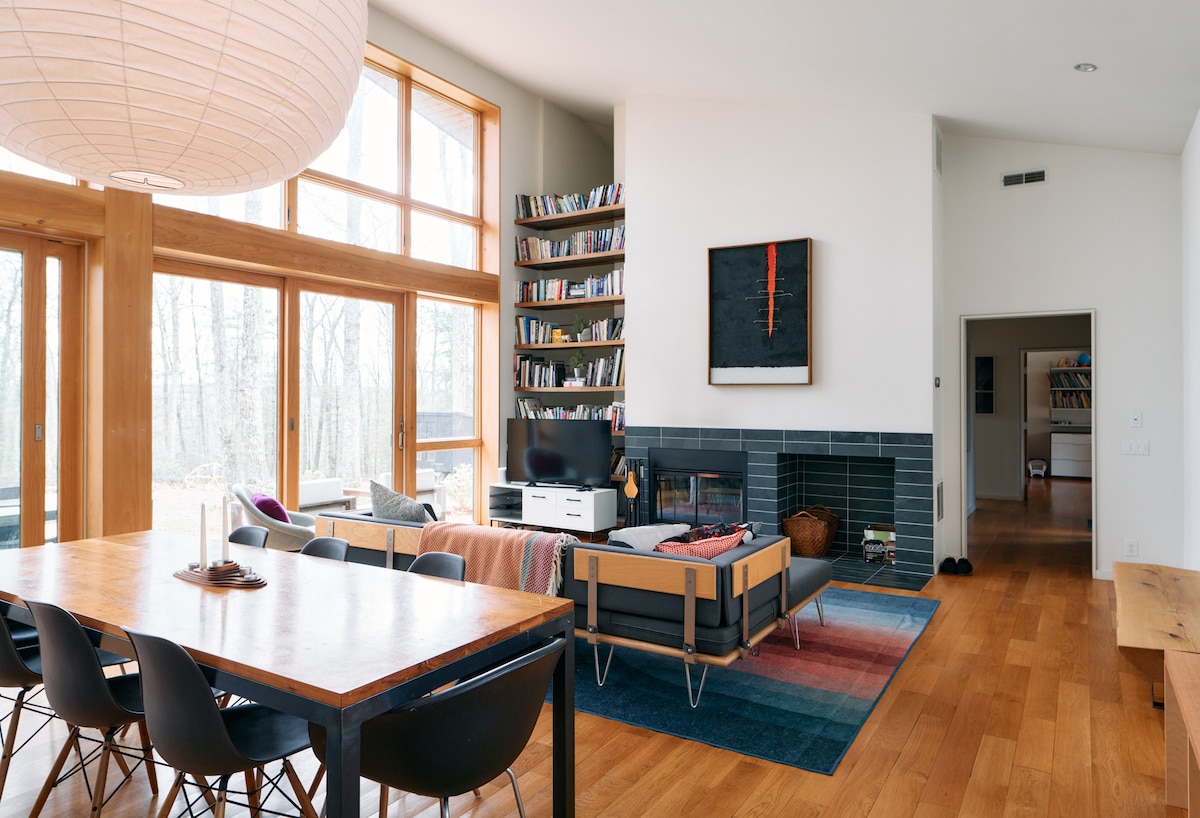 Welcome to the Cherrytown Cottage. This cozy mid-century modern bungalow in the woods is the perfect home for a solo traveler, a couple friends, a couple, or a small family looking for a comfortable stay that’s conveniently located to some of the region's best hikes AND some of the most popular restaurants, orchards, and breweries in the area! (Or simply stay cozied up at home and play board games by the fireplace!)