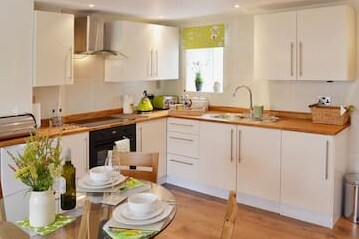 Oak Barn is a luxurious barn conversion with gardens, surrounded by fields on the edge of Lower Peover near Knutsford, Cheshire. The tranquil space sleeps a couple or family comfortably in a large bedroom with shower room and a fully equipped kitchen. Two pubs and a well stocked village shop are within walking distance and the historic town of Knutsford is a 10 minute drive away. A hamper of breakfast bits is provided incl. eggs, bacon, muesli, bread etc - vegan options available on request.