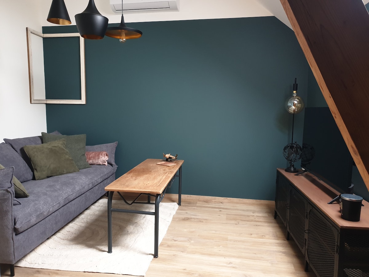Welcome to L'Escale, in the heart of a peaceful village: the ideal place for a relaxing stay. This bright and warm studio, located in a green pavilion with private entrance, accommodates 2 adults and 2 children. It will delight the little ones thanks to an atypical space on a hanging net. This space maintains a friendly connection with the adult night space. Share friendly moments around the immersive home cinema or in the garden equipped with furniture, bicycles.