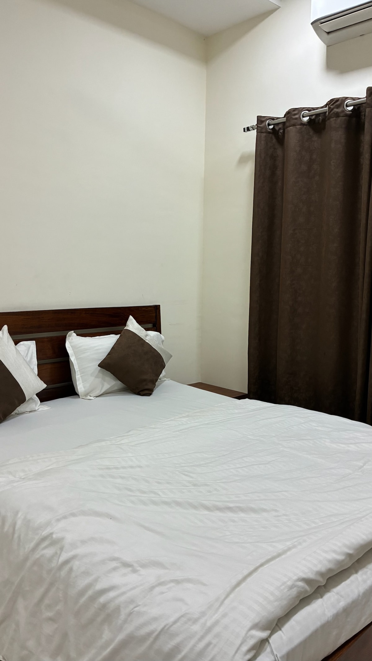 This luxury home set the stage for a lifestyle that effortlessly combines sophistication with tranquility. We provide: • AC • Wi-Fi • Bed, Pillows, bedsheets, pillow covers, blankets. • Attached washroom, geyser, towels • Modular kitchen with utensils • Gas with stove • Workspace table with 2 chairs • Wardrobe • Dressing table • Common washing machine • Common refrigerator • Open parking space We do not have: • Lift/elevator. • Generator backup. Looking forward to welcome you.