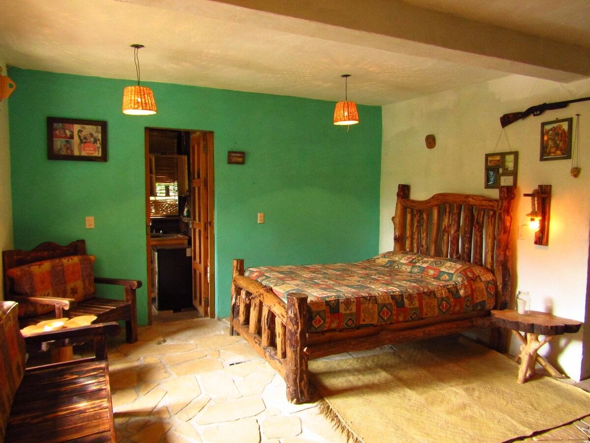 1 bedroom-loft. Complete Kitchen. Ideal for camping. Campfire. Dry bath. Hot water. Organic breakfast or meals on good price, previous request. Cultivation of organic vegetables and bioconstruction. Beautiful views! Next to the forest and a stream, near the springs of Huitepec. Large trees, epiphytes, birds. Fruit trees, organic vegetables, medicinal herbs, chickens, ducks, rabbits... WiFi. Calm and safe. Friendly and cheerful. Combi 15 minutes from the city center. 30 min walking.