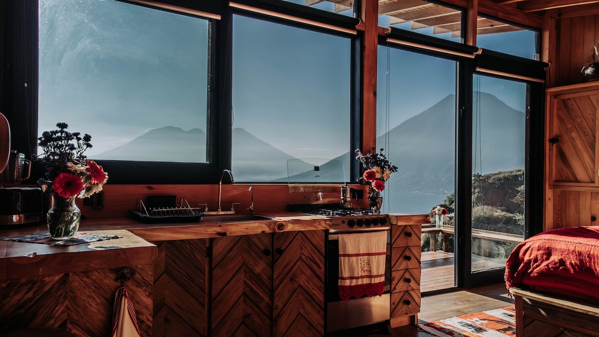 Very Unique & Modern Luxury House up in the Guatemalan Highlands with the sensation of floating up in the sky (1700m) -Features unobstructed Starlink connection with 24 hours of unbroken electricity (lithium/solar) -All windows folds fully open to greet the breathgiving views of 5 vulcanos and the “infinity lake” of the ever changing “painting” -Filtered spring water on tap -Bathroom hot tub for a closed or open door experience -12 m2 cantilevered hammock deck-net for stargaze & relaxation