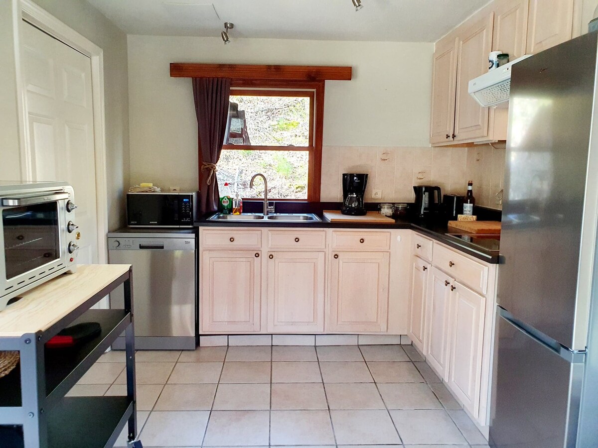 ZEN COTTAGE.... Details of rooms: total area: 42m2 A beautiful fully equipped kitchen (1 table + 2 chairs, 1 fridge, microwave oven, electric hob, 1 coffee maker, more kitchenware) The kitchen is opened on the living room and on a glass door giving on a terrace of 18 m2 with a table of garden + parasol for 2 people, 2 chairs and barbecue. 1 living room including a sofa bed + coffee table. A nice bathroom with shower, sink / mirror, and 1WC.