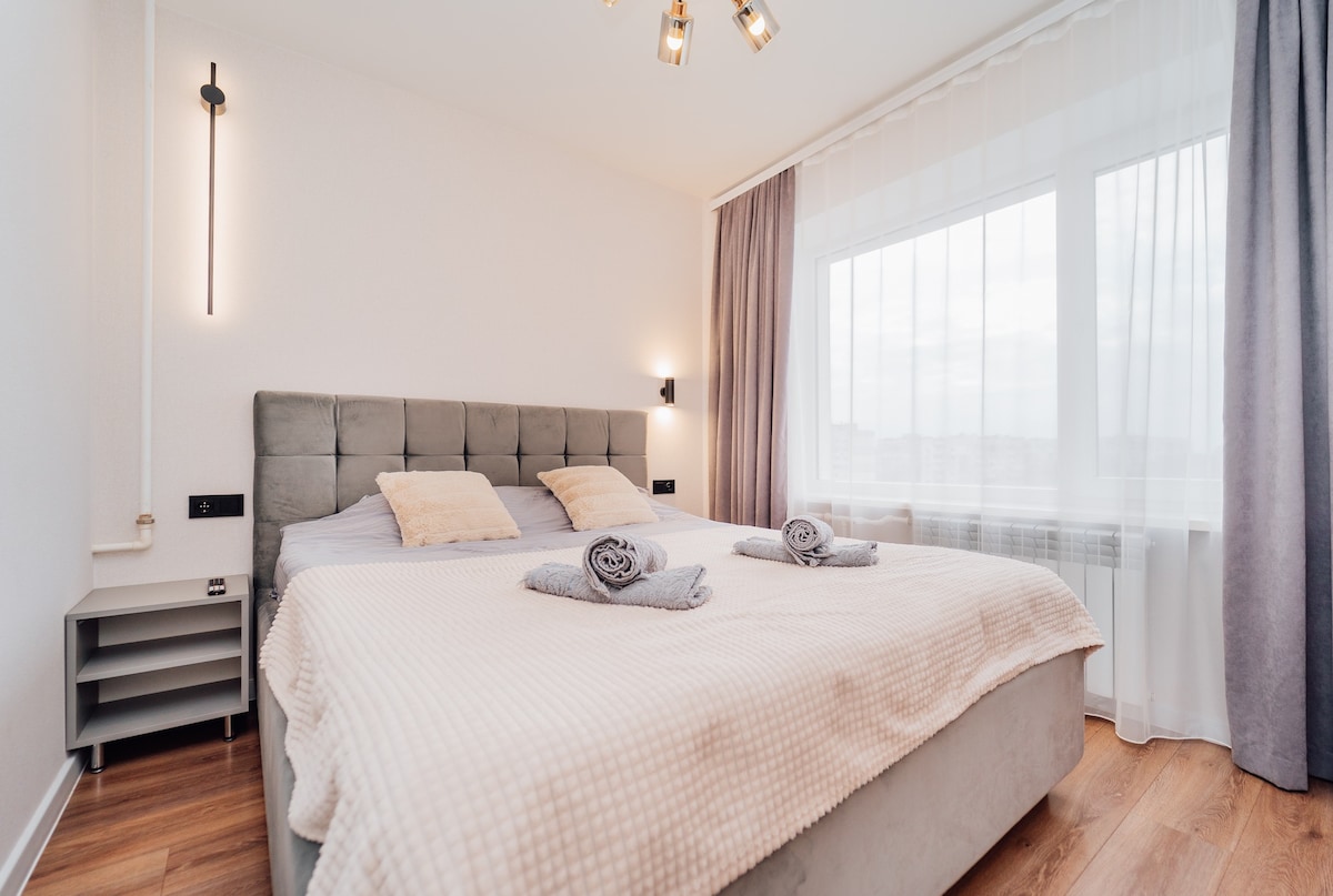 Большая стильная квартира рядом с парком Долина Роз. В шаговой доступности озеро, магазины и развитая инфраструктура. До центра — 15 минут, до аэропорта — 20. Отличный выбор для гостей, ценящих комфорт и природу у дома.
