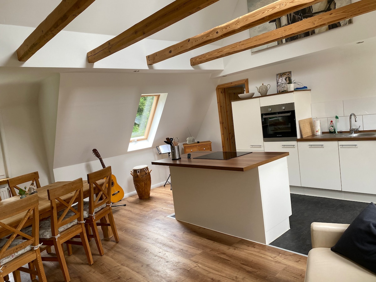 The apartment is located in a thatched roof house from 1750. The former plank door was replaced by a large glass window. In front of it, you can enjoy your first coffee in the morning and have breakfast in the sun. The property is located in the heart of Schleswig-Holstein, in the Aukrug Nature Park with wonderful opportunities for cycling and hiking tours. By car, the North Sea and the Baltic Sea can be reached in about 1 hour. A parking space is always available in our courtyard.