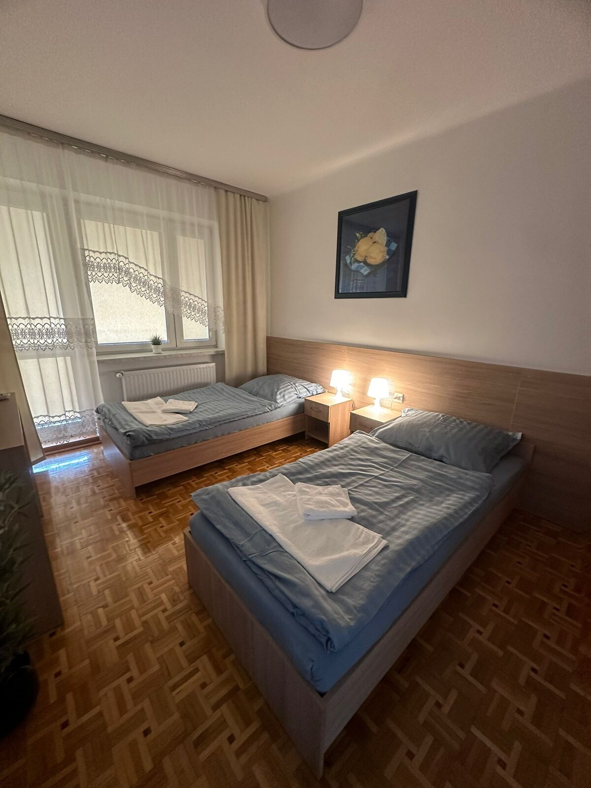 Jeśli szukasz wygodnego i komfortowego miejsca do zamieszkania w centrum Jaworzna, mamy dla Ciebie idealną ofertę! Nasz apartament to miejsce, w którym poczujesz się jak w domu. Jest przestronny i w pełni wyposażony, dzięki czemu zapewnia wszystko, czego potrzebujesz, aby mieć udany pobyt. Nasz apartament jest idealny dla rodzin lub grupy przyjaciół, ponieważ może pomieścić do czterech osób. Posiada trzy wygodne łóżka jednoosobowe oraz przestronną sofę rozkładaną w salonie.
