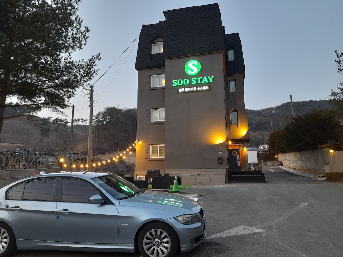 We are proud to be the best place for leisure and relaxation in this place where the blue forest and streams are harmonized. We will do our best to avoid any inconvenience during your visit. * Accommodation features 1. Indoor 165 sqm, land 980 sqm 2. Clear stream in front of the house 3. Yellow earth room 4. Outdoor installation of the latest barbecue equipment 5. Swimming pool (4mx2m) sand filter, salt water system * Nearby attractions 1. Koska Golf Course (20 minutes) 2. Rainbow Hills Golf Course (30 minutes) 3. Evendale Golf Course (25 minutes) 4. Blackstone Belle Foret (10 minutes) 5. Bonghakgol Forest Bath (16 minutes) * If you come to Jeungpyeong Villa Parents can steam in the red clay room and play various games in the lawn. In addition, you can enjoy an evening drink with a clear view and sunset from the deck in the evening, and you can talk all night in the spacious living room indoors. * Barbecue pool setting (based on 8 people) -50,000 KRW * Summer swimming pool operation (Period: July 1 to the end of August)