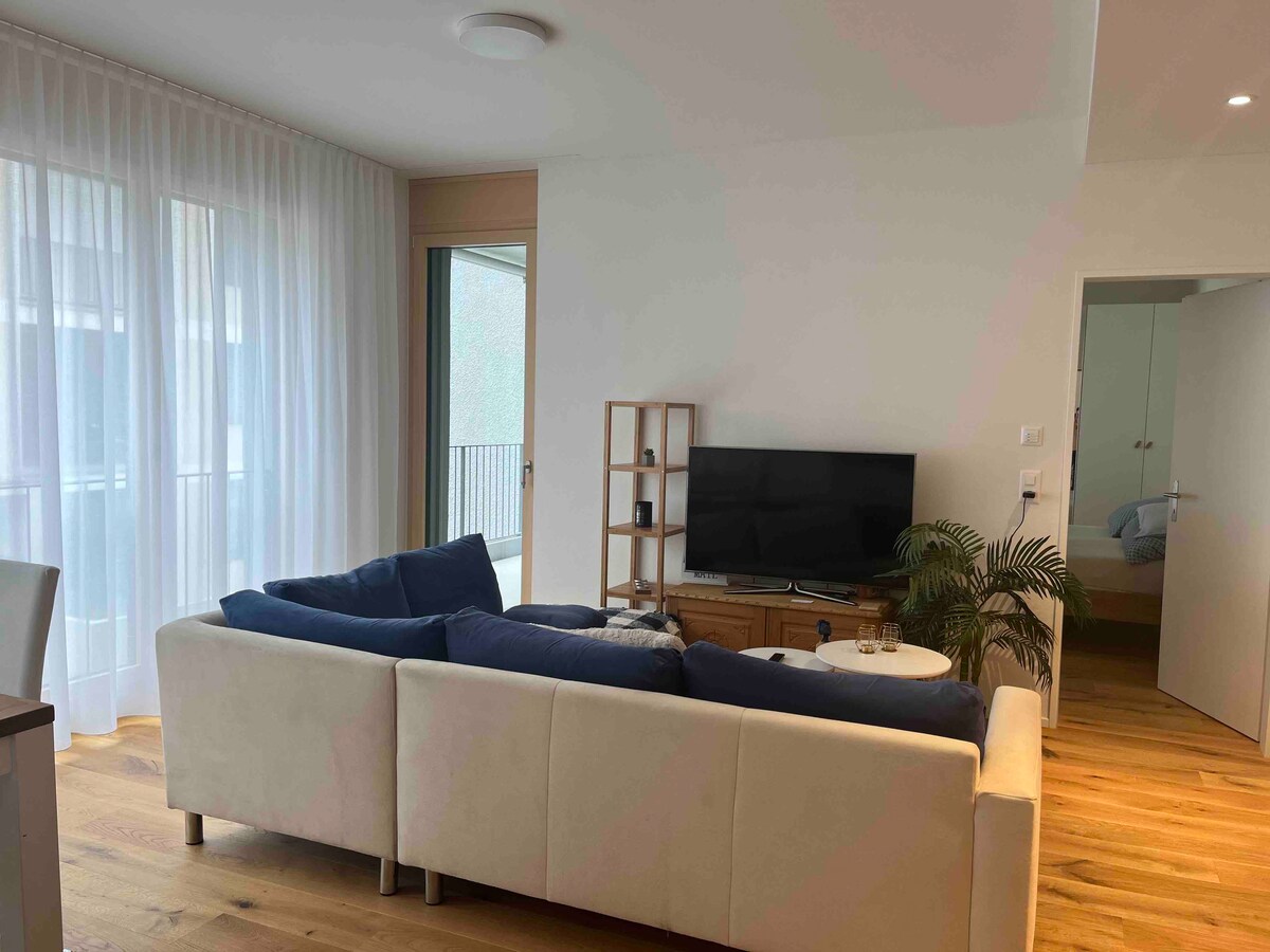 Sehr schöne und moderne Wohnung in Chur Sehr helle Wohnung an ruhige Lage und trotzdem zentral Tolle Unterkunft mit viel Platz und kinderfreundlich /Ideal für Familie mit Kleinkind Sehr moderne Küche Kinder-Hochstuhl vorhanden Die Wohnung ist neu Sehr helle Räume 5 Minuten vom Zentrum und zum Bahnhof Chur Parkplatz ist inklusive Auf Wunsch besteht die Möglichkeit ein Kinderbett im Schlafzimmer einzurichten Schöner Spielplatz Einkaufsmöglichkeiten in 2 Minuten zu Fuss erreichen ruhige Lage