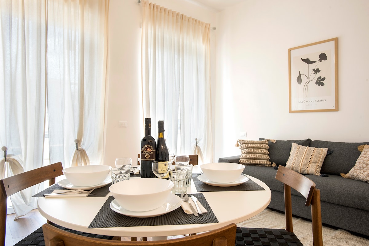 Modern apartment with all amenities, for a comfortable stay in the heart of the Tuscolano-Don Bosco neighborhood. Area well connected with metro A (about 200 meters), buses and trains to major historical and cultural sites in Rome, Termini station and airports. Very close to the Aqueduct Park, which is only a 10-minute walk away, where the ancient Flavian aqueduct from the Roman era is visible. The historic catacombs can also be reached by bus. We look forward to welcoming you to Rome.