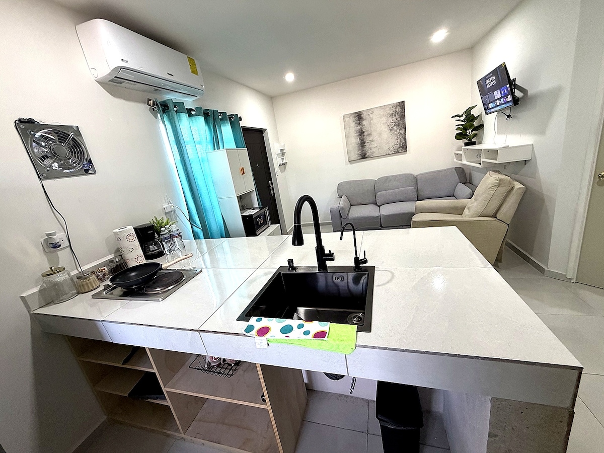 ¿Buscas seguridad y privacidad? Nosotros te la ofrecemos. Suite moderna, nueva y totalmente equipada, ideal para una estancia cómoda, privada y segura. Cuenta con cama King size, A/C silencioso, Wi-Fi rápido, Smart TV, cocina equipada y área de trabajo. Además, tiene puerta de seguridad y estacionamiento privado gratuito, totalmente bardeado, para mayor tranquilidad y resguardo de tu vehículo. Cerca del puente internacional, perfecta para viajes de trabajo o descanso.