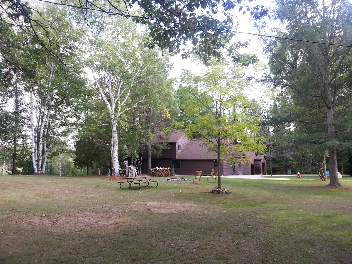 Relax with the whole family or significant other at this peaceful place to stay on Sutherland Lake. Go fishing off the dock or use our rowboat with trolling motor. You have access to two kayaks, a SUP board, and a canoe. There's plenty of outdoor seating for bbqs, campfires, or watching the beautiful sunsets and Fall colors. Minutes from town, Leota ORV Trailhead, Snowsnake Ski and Golf, The Tamaracks golf, and Rocks and Valleys Off-Road Park. Also, Harrison has 20 lakes in 20 minutes!