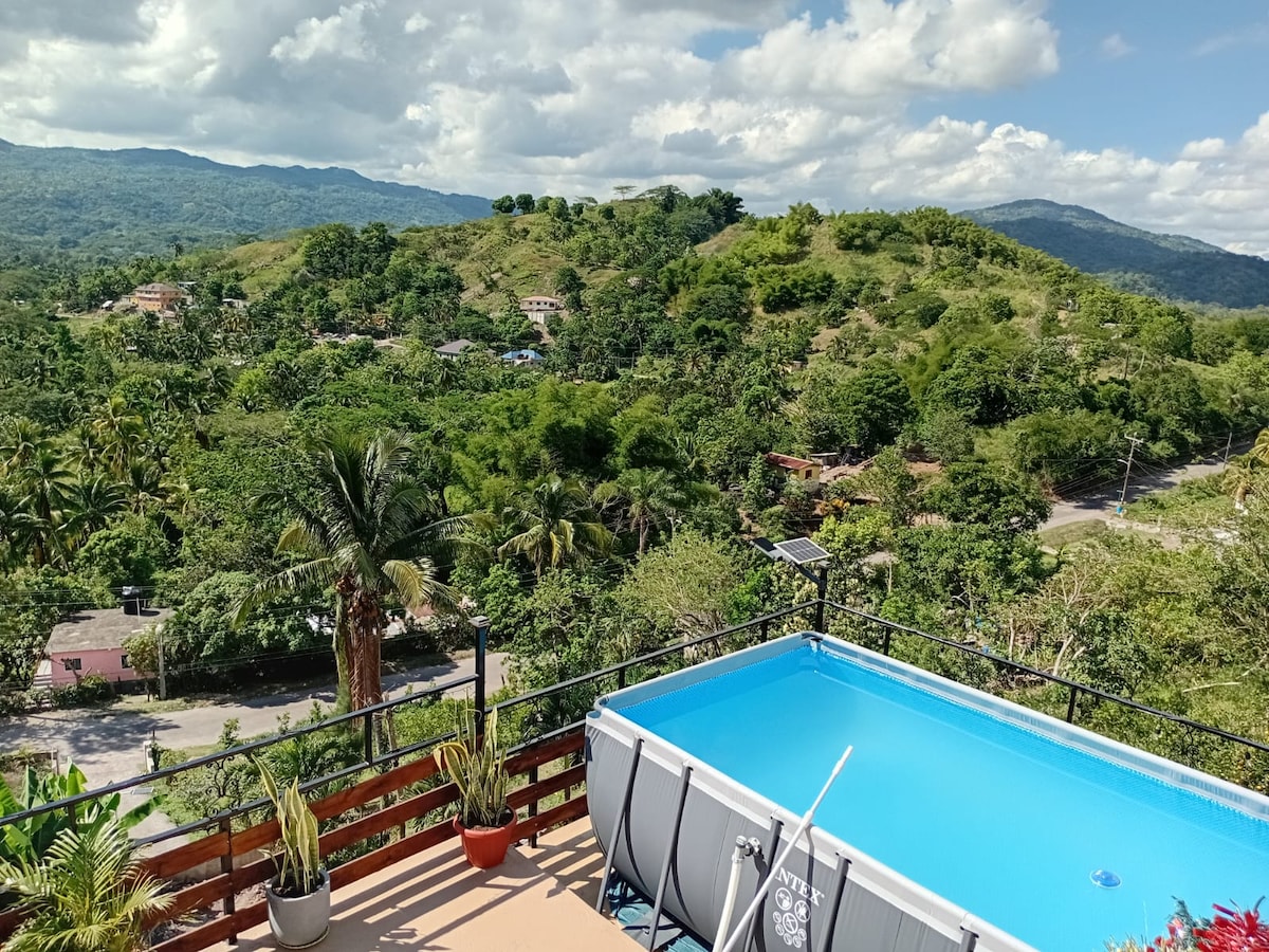 The whole group will be comfortable in this spacious and unique space,that offers some of the best views for a relaxed getaway. The apartment has 2 bed and 2 bathroom with a open kitchen and living area perfect for a group of friends or family. Guest have access to our rooftop gazebo, pool and dining area. Note : The Apt is accessible only by steps.