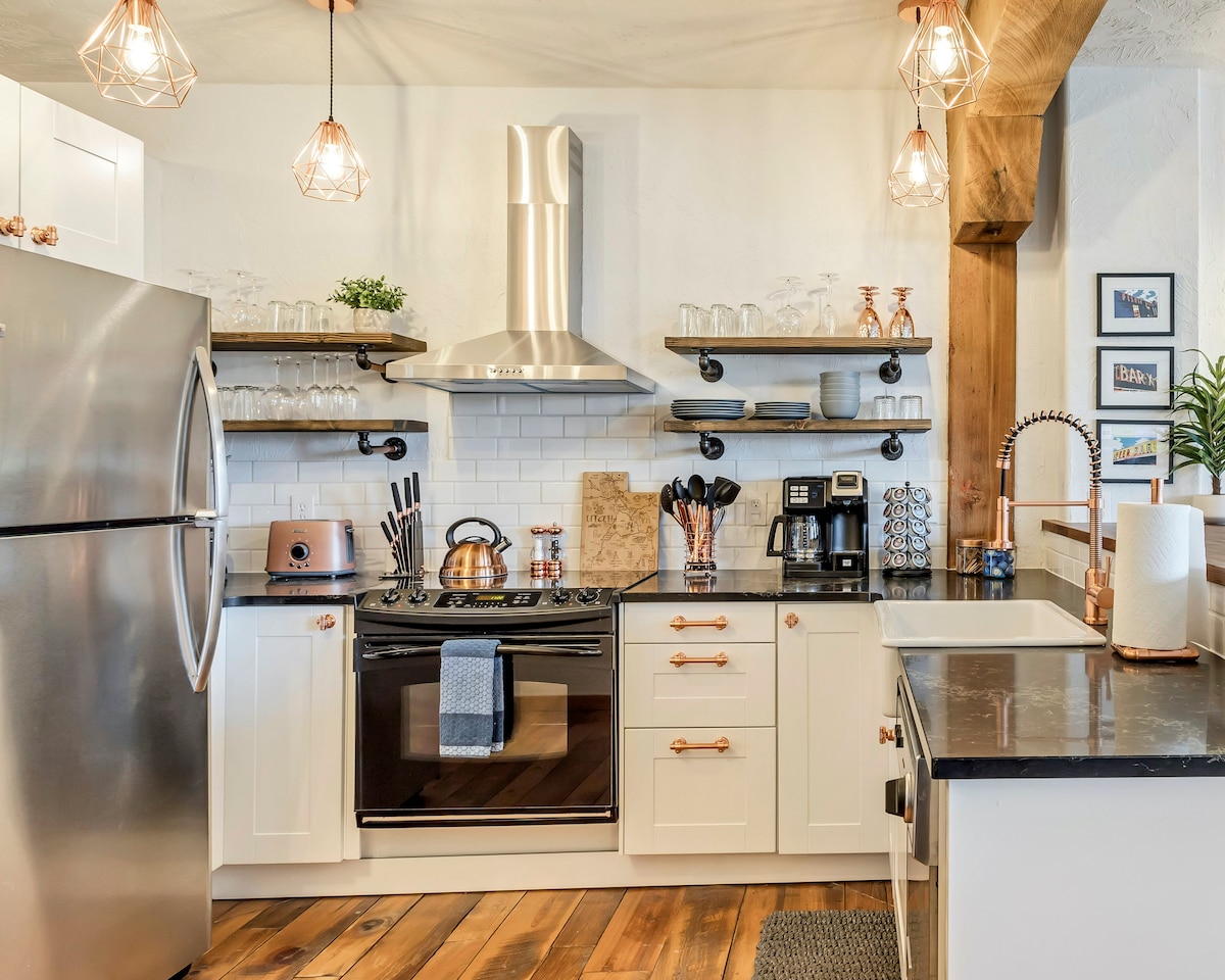 Stay in this stunning industrial style 100-year-old converted warehouse with a jetted tub! Perfectly located in the heart of downtown Salt Lake City. Walking distance to the Gateway Mall (4 minute walk), City Creek Shopping Mall, Delta Center (5 minute walk), Salt Palace Convention Center (7 minute walk!), grocery stores, bakeries and the most popular bars and restaurants. It is a 10 minute drive from the airport and a 30 minute drive to the ski resorts! Perfect for any getaway!