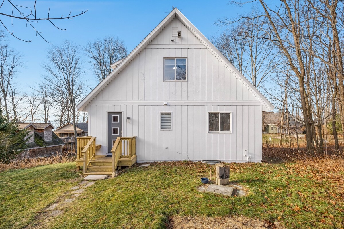 Escape to this fully remodeled, 1,617 sq. ft. beachfront home with 135’ of private Lake Michigan frontage. Enjoy breathtaking sunsets from the open-concept kitchen or vaulted-ceiling living room with expansive windows. In summer, relax on the private beach; in winter, cozy up by the fireplace after admiring stunning ice formations. Surrounded by oak trees, this serene retreat blends modern amenities with nature’s beauty for a truly unforgettable year-round getaway experience.