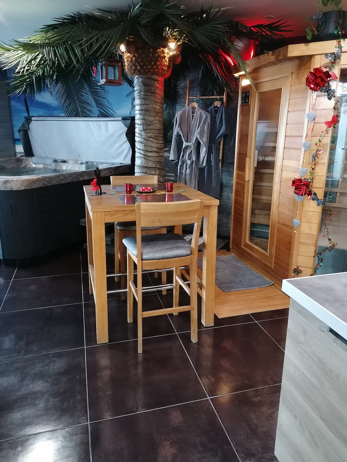 Besoin d’une escapade romantique 🥰 ? Venez passer un agréable moment sensuel avec votre partenaire au romantic’home'spa 💋 Vous profiterez d’un sauna et d’un spa privatif en illimité 🫧 Une salle de bain avec douche taille xxl 🚿 Une cuisine entièrement équipée👨🏻🍳 D’un salon et d’une chambre tout confort! (Netflix non inclus) Vous arriverez de façon autonome (digicode) Une bouteille de bienvenue vous attendras bien au frais 🥂 Et un savoureux petit déjeuner à votre réveil.