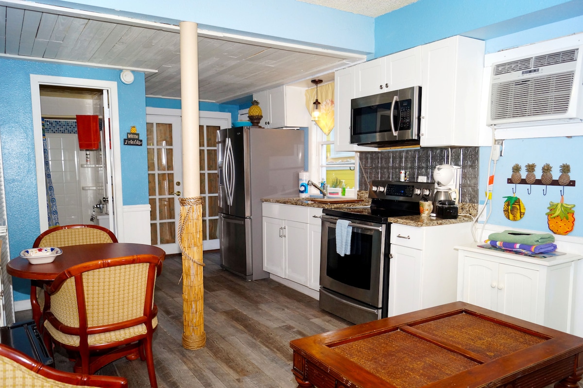 Just a short walk to the beach, this a great beach getaway for couples or families with one child. On your way stop at the Cooky Coconut for lunch, an awesome milkshake or a variety of snacks. With a totally new renovation in 2024, this unit is updated, very clean & worry free. This cottage is located in a quiet residential neighborhood and a great place to relax. Laundry on shared screened porch. Dogs allowed ($35 extra) add them on # of guests page . Easy refund policy. Level 2 EV charger