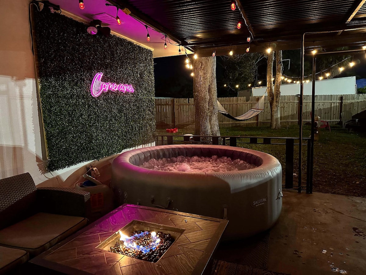 Have you ever wanted to try out a Tiny house? Want to stay in Tampa? This is the listing for you. This is a THREE BEDROOM tiny house! It has a queen sized bed, and two king-sized beds, (or they can split into four twin sized beds!) Our kitchen has all the amenities of a regular kitchen! The bathroom has Laundry, and shower with Endless Hot Water! Outside you’ll find a Grill and outside seating! We are 15 minutes from the airport! We’re sure you’ll enjoy our beautiful 35 foot not-so-tiny home!
