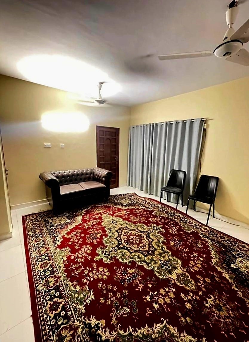 Bring your whole family to this great place with lots of room for fun! The property includes: 3 spacious bedrooms with bathrooms, a dining room, a spacious lounge, a drawing room, 2 kitchens (big & small) and a patio. Disc Weekly 25% Monthly 50% Area Info: The go to place to live in DHA Karachi, with close access to banks, restaurants, convenience stores and pharmacies and clinic. 10 mins walk from the beautiful Karachi seaview, with nearby food spots, parks, malls, and a commercial market.