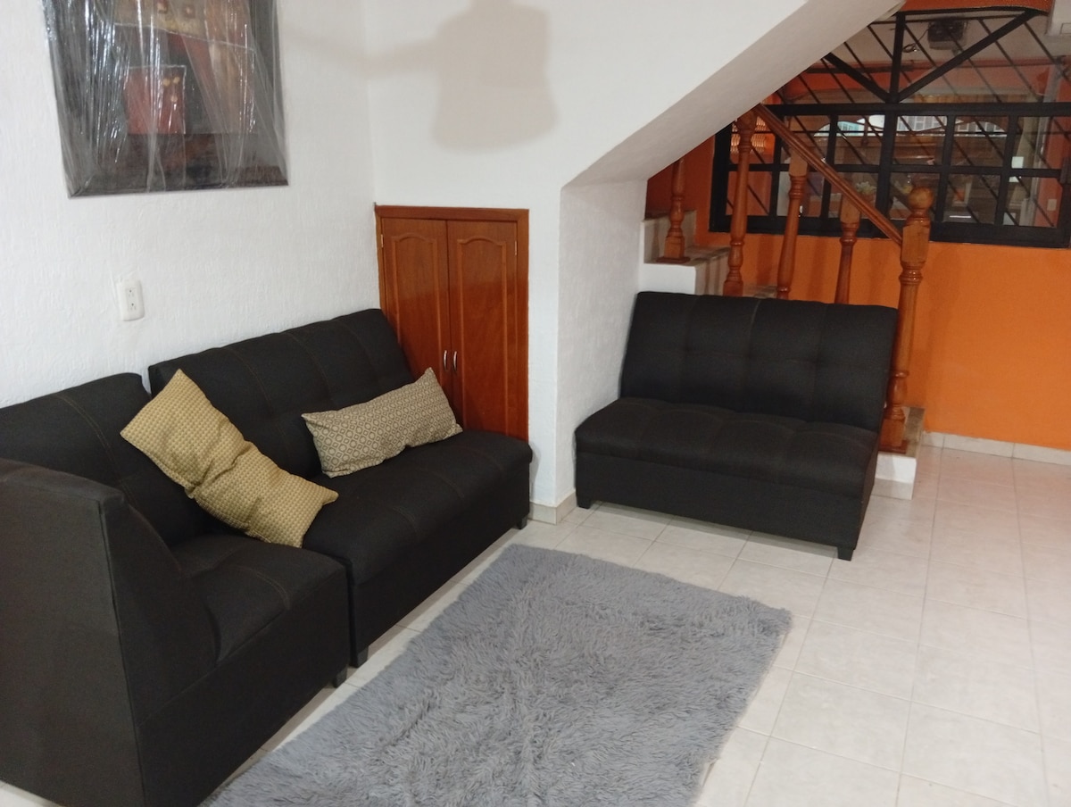 A pleasant and functional space, with two bedrooms with air conditioning, bathroom and kitchen, located on the second floor, so you have to climb stairs, minimal. Equipped with a refrigerator, stove, washing machine, microwave and cooking utensils to make your stay pleasant. You also have private parking space for one car. The area is surrounded by pharmacies and convenience stores such as Oxxo and is located a few steps from downtown. Your pets are welcome!