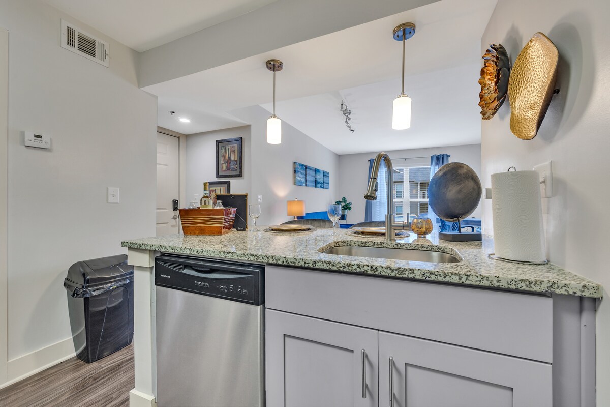 This Casual Executive apartment to stay is perfect for group trips, it is located by the Truist Park home of the Braves and a easy 5 min walk to the Coca Cola Roxy. During your stay, you will rest in a huge King size bed, the kitchen is fully equipped with everything you may need and safe dishes for the little ones. The spacious living room has a comfortable queen size sofa bed for additional guests, and a beautiful view of the lake.