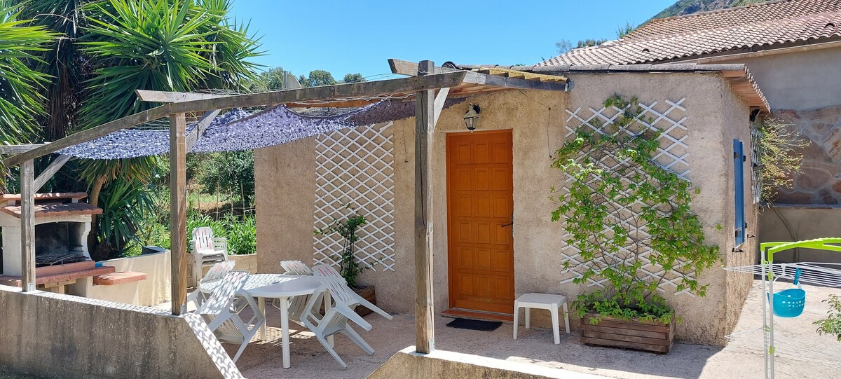 Nice air-conditioned studio 15 minutes from Ajaccio. On the first floor of the owners' villa. Ideally located, 20 minutes from the port and airport, 10 km from the beach, while being quiet in the countryside. Centered on the West Coast, at the crossroads of roads serving the remarkable sites, coves of Piana to the North, Bonifaccio to the South, Corté... The apartment is new and well-equipped and has a shaded terrace equipped with a table and garden furniture.