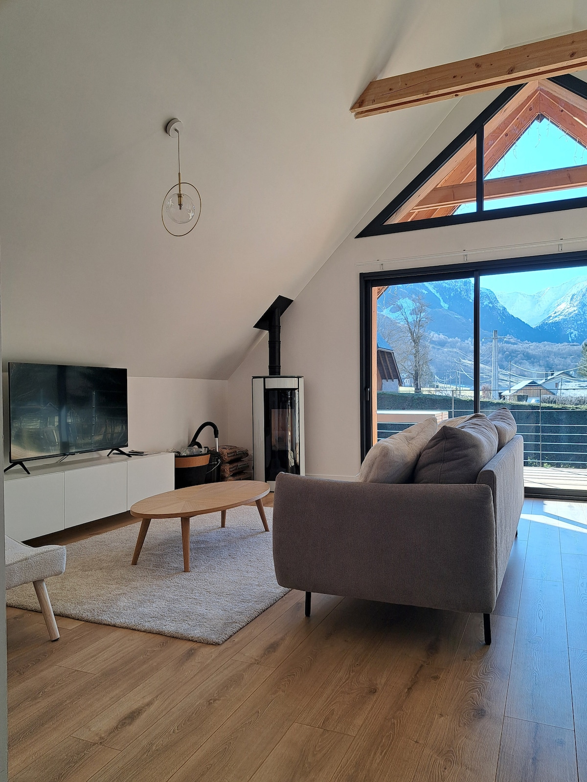 This new cozy and contemporary chalet is ideal for a stay as a couple or family. Designed with raw and artisanal materials, this little gem exudes calm, purity and serenity to recharge your batteries in summer and winter. You can admire the view of our mountains from the terrace or the Nordic bath located in the private garden. With a capacity of 2 to 4 people with its two bedrooms, each of which has its own bathroom and a very nice bright and warm living room.