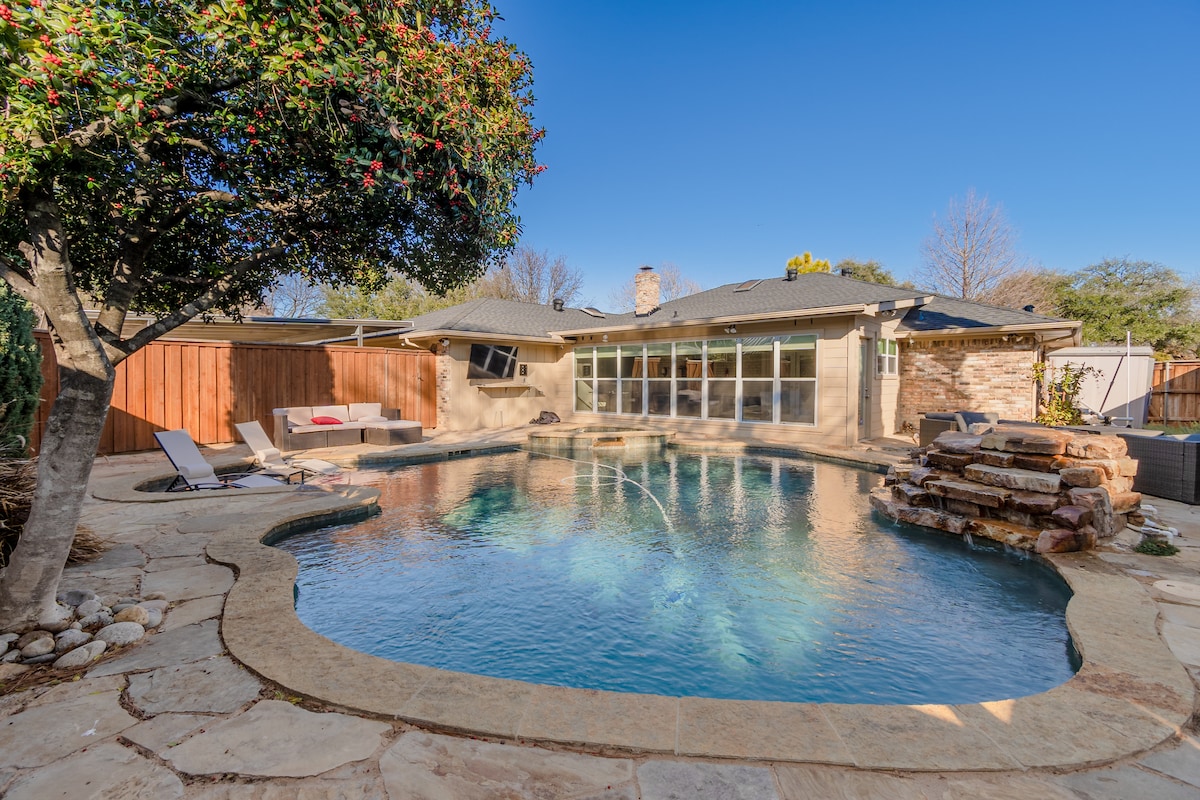 Stunning modern designed home located in the heart of Dallas! This beauty is perfect for friends, family, and having fun. There’s something for everyone, late night BBQs, dips in the pool, table football and plenty of space to relax! Close to some of the best destinations Texas has to offer such as Six Flags, Hurricane Harbor, Texas Rangers Stadium, world-famous AT&T Stadium as well as plenty of BBQ eateries and gourmet restaurants.