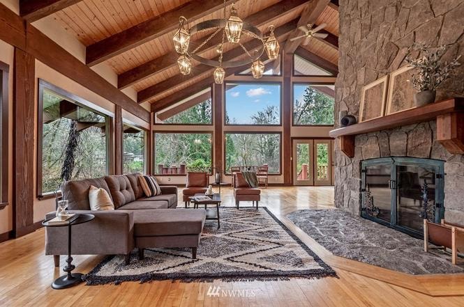 Welcome to Kalama Riverside Lodge — a modern-rustic riverfront retreat set on 2 private acres with direct access to the Kalama River. This 4-bedroom, 2-bath home sleeps up to 11 and features heated floors, a fully equipped kitchen, a game room, and an upstairs lounge. Enjoy river views from the living room, soak in the hot tub, or gather around the fire pit for a perfect evening outdoors. Ideal for family getaways, fishing trips, and group stays.