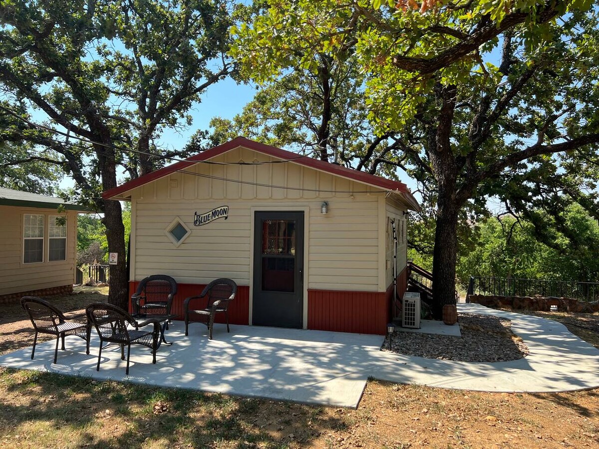 Welcome to the Easy Rider Cabin! This unique cabin is conveniently located in the heart of Medicine Park. When pulling up the first thing you will notice is the large tree growing through the front deck giving you shade anytime of the day. The interior has been styled in motorcycle theme using custom lamps, clock, and American flag. There is a queen bed, sitting area, custom barrel dining table and night stand. Small kitchenette w/ fridge, microwave air-fryer oven combo, PitBoss Pellet Grill