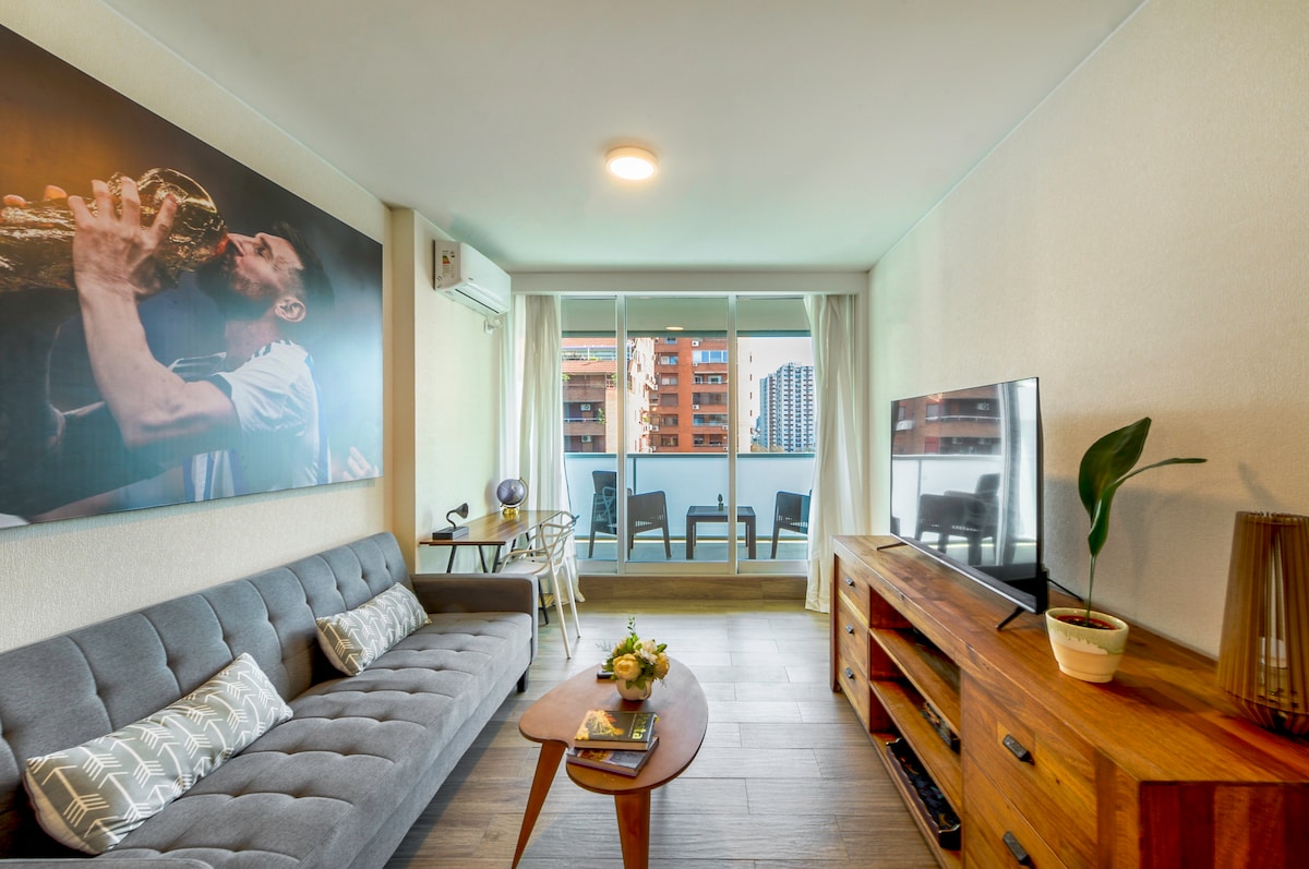 Located in a premium tower in Belgrano, this brand-new 1-bedroom apartment offers design, comfort, and 24/7 security. Ideal for business or leisure stays, with top-tier amenities and excellent connectivity. Just steps from the renovated Chinatown, featuring a unique blend of gourmet shops, international brands, and a modern dining corridor. Close to Núñez, Palermo, the domestic airport (Aeroparque), and River Plate Stadium.