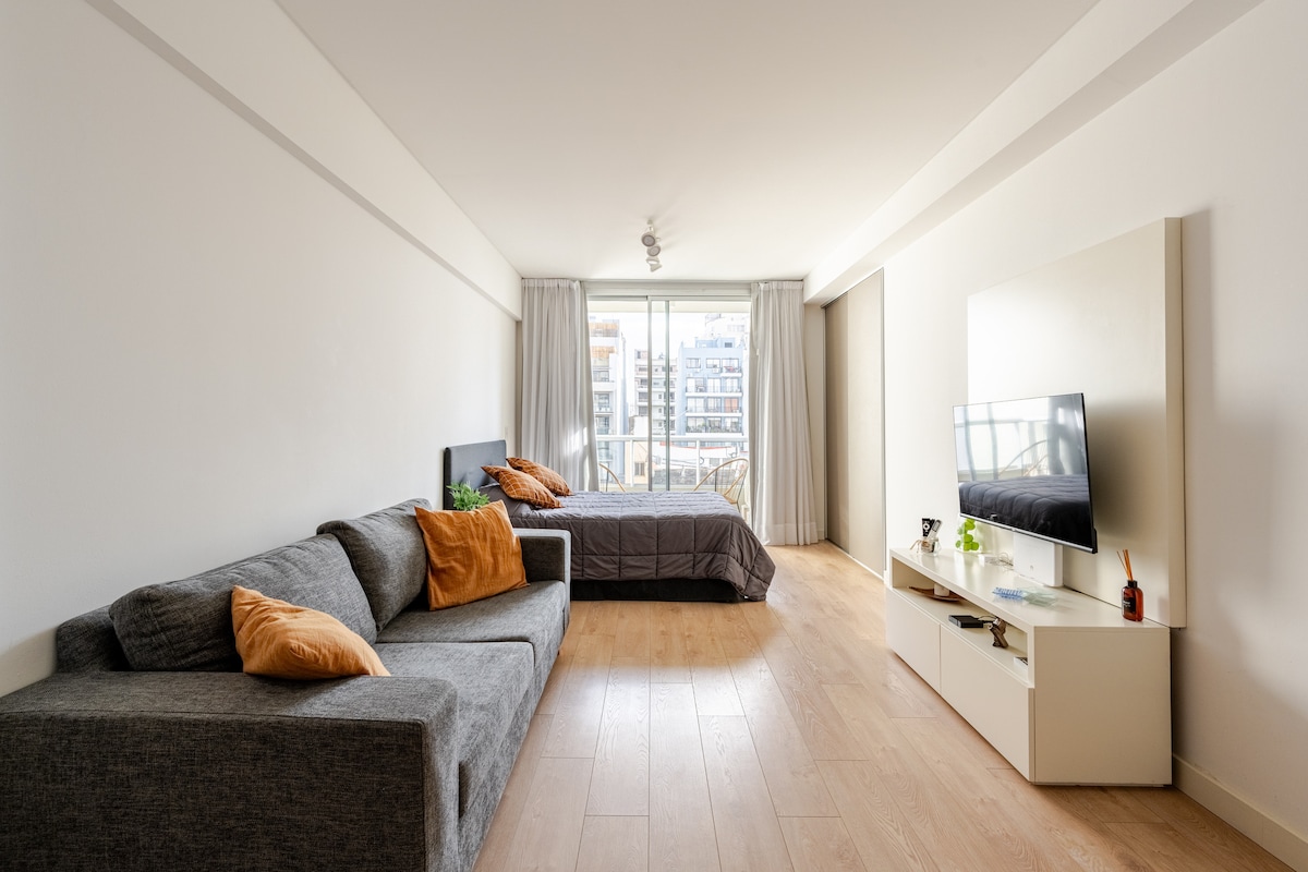 A few meters from the important avenues of Rivadavia and Medrano, this brand new accommodation has a style of decoration that will surprise you. 55-inch TV with all streaming services, air conditioning, high-speed WiFi, and a comfortable desk for working. Bright and quiet, you can work quietly and enjoy this comfortable space for 3 people (1 queen bed + 1 single bed). The building has two elevators, laundry and SUM (with prior reservation)
