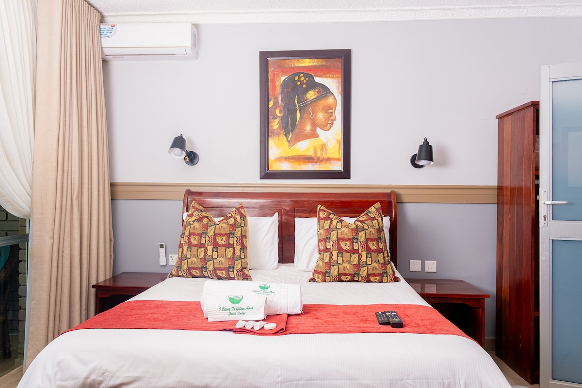 Modern, stylish room in Golden Acres Guest Lodge Fine dining at our on-site restaurant Sleep in premium 400-thread count Egyptian cotton linens Smart entertainment and high-speed internet included Safe, peaceful setting close to city attractions Ideal for restful nights and stress-free stays
