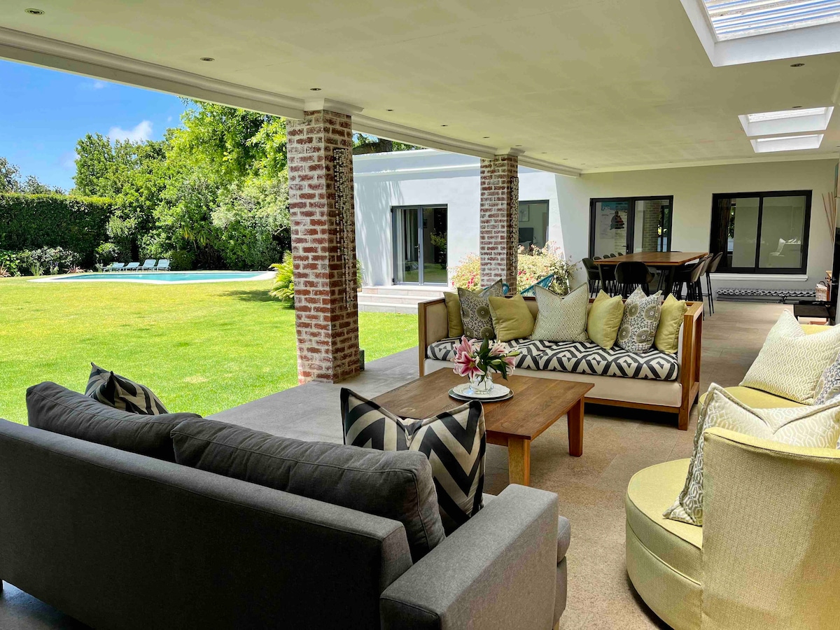 "NO Airbnb fees are added to the price you see" Constantia Klein Villa is a beautiful self-catering 4 bedroom ensuite house with private swimming pool , large covered patio and BBQ facilities. Surrounded by the tranquility of Groot Constantia, Buitenverwachting and Klein Constantia Wine Farms. Walk from the garden into the Groot Constantia Vineyards or to Klein Constantia Wine Farm.