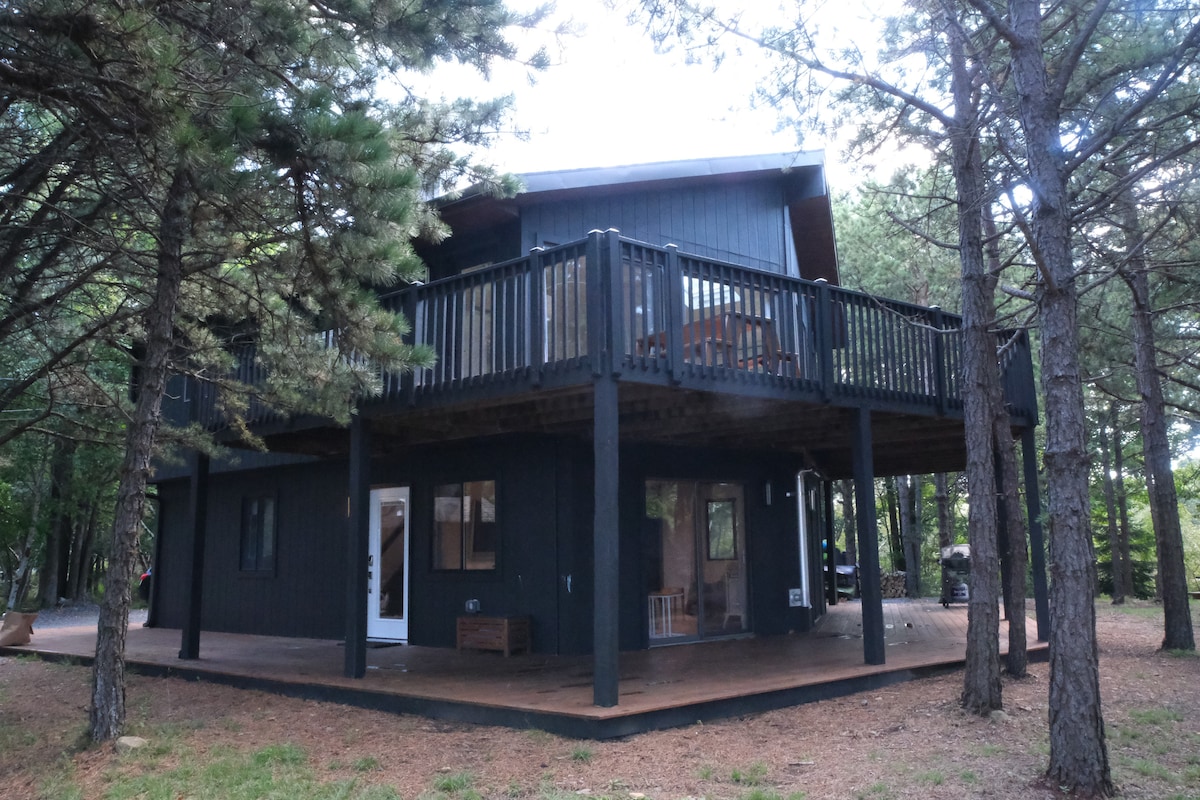 Escape the ordinary and step inside our modern chalet, a true lakefront. Our modern kitchen is fully equipped to cook a chef’s meal and feast around the rustic farm table. Relax by the crackling fire of the fireplace. Indulge in the Finnish sauna after hiking or skiing. The natural light, pine trees and panoramic views of the lake, all make it a peaceful place to relax and enjoy some nature with your loved ones. Comfort awaits with 100% cotton linens, firewood provided on-site, and 4 Smart TVs