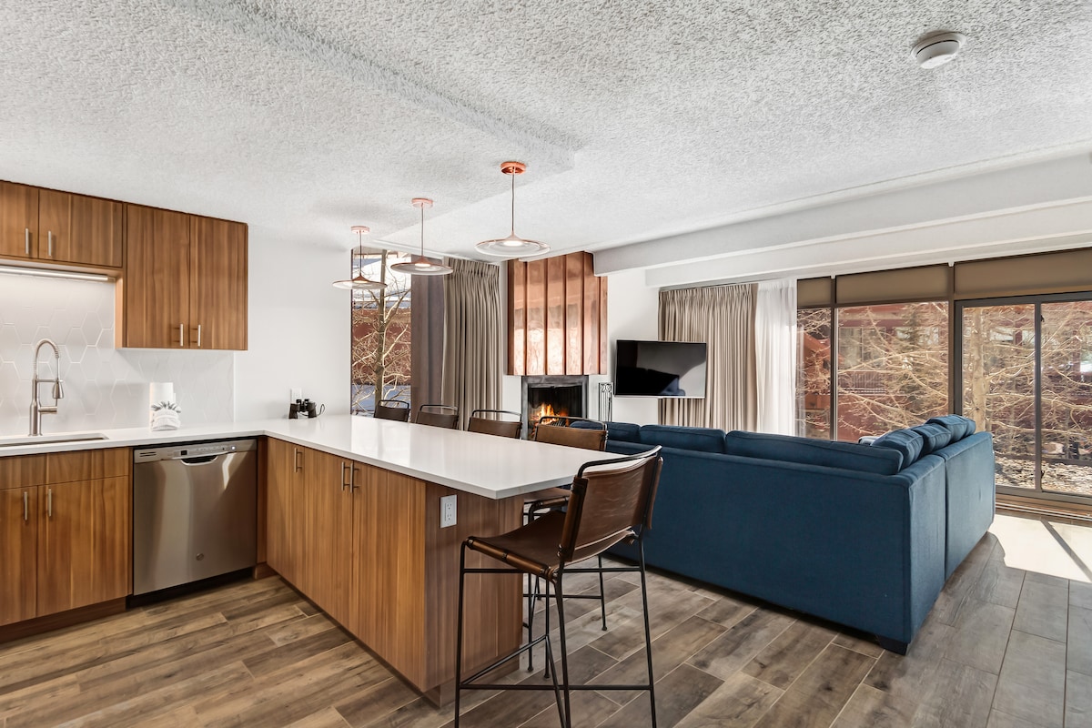 Experience ultimate relaxation in our newly renovated, spacious ski-in, ski-out condo at Copper Mountain. Just a 5-minute walk to the slopes, you'll maximize your time on the mountain! Unwind in the communal hot tub and sauna, and enjoy the convenience of restaurants in the same building. Nestled in Copper's Center Village, you're just steps away from all the dining and shopping Copper has to offer. Fall asleep and wake up to the soothing sounds of 10 Mile Creek right outside your balcony.