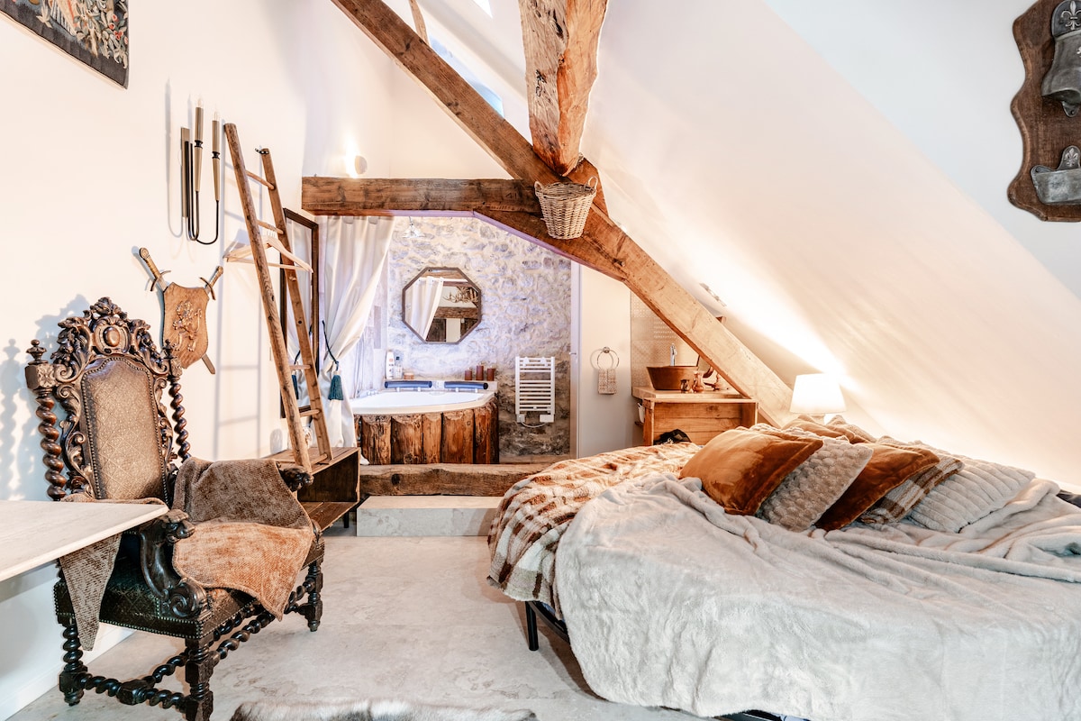 Romantic loft with whirlpool tub & sensory shower