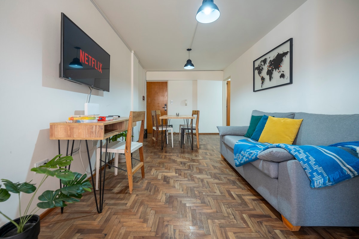 Welcome to your home in the heart of Nueva Córdoba. This functional and cozy space is ideal for work, study or tourism. Relax on the comfortable sofa or enjoy fresh air on the private balcony. If you need to work, you have a comfortable desk and chair at your disposal. The bedroom has a double bed and a large closet, while the bathroom includes a bathtub for a relaxing moment. You'll have exclusive access to the entire apartment with a simple and flexible check-in.