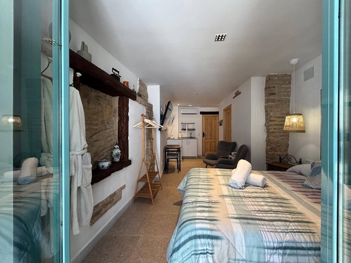 Stay in this charming, newly renovated apartment, decorated with special care to maintain a unique interior, an important canvas of the Roman Wall. Located in the heart of the historic center, near the Guadalquivir riverbank. Ideal studio for couples, it has a modern, open and bright design, in the bathroom you can see a large part of the Roman Wall. It has everything you need to spend a few days enjoying Córdoba Close to taverns, restaurants, and leisure areas.