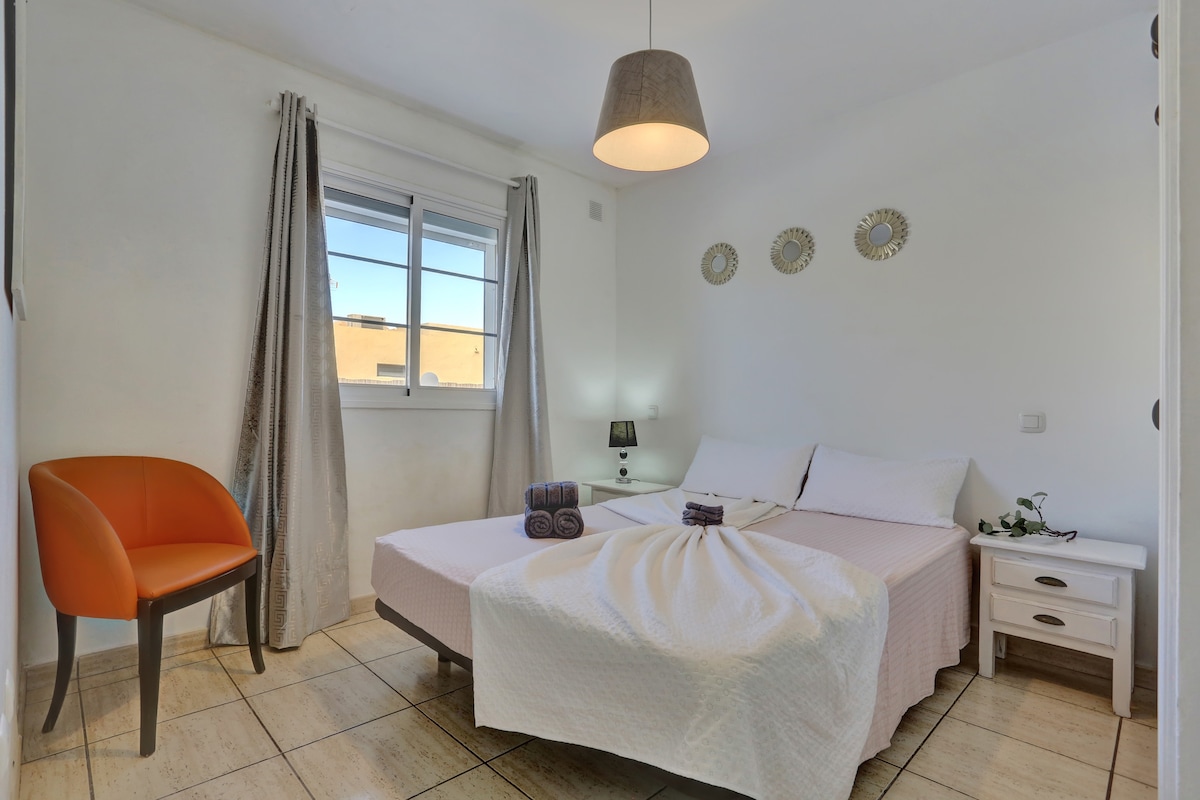 Very bright apartment with Wifi,SmartTv(Netflix and First Video), in one of the best areas of Corralejo in the center. All restaurants on foot, Hiperdino when folding the corner, banks , bazaars for printing documents, cafes, cafes, children's playground, soccer field, no need to take the car at all , there is even a small beach just 100 m. Large house, clean, 1 sofa bed, large shower tray, 2 double beds of 140 in bunk bed with TV.