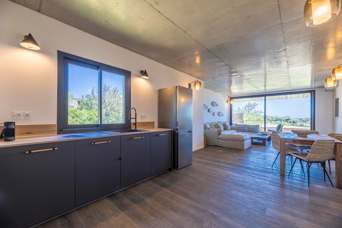 Loft duplex de standing, flambant neuf, situé dans une grande maison familiale de caractère, à 10 mn de la plage de Santa Giulia, à 15mn de Porto Vecchio et à 20 mn de Bonifacio. L’ espace principal de 45m2 est entièrement vitré sur ses 2 façades. Il offre une vue dont on ne se lasse pas, sur le maquis, les collines granitiques et au loin, la magnifique chaîne montagneuse qui se ponctue par le sommet le plus au Sud de la Corse: l’Omu di Cagna. Un véritable paradis pour des vacances de rêves