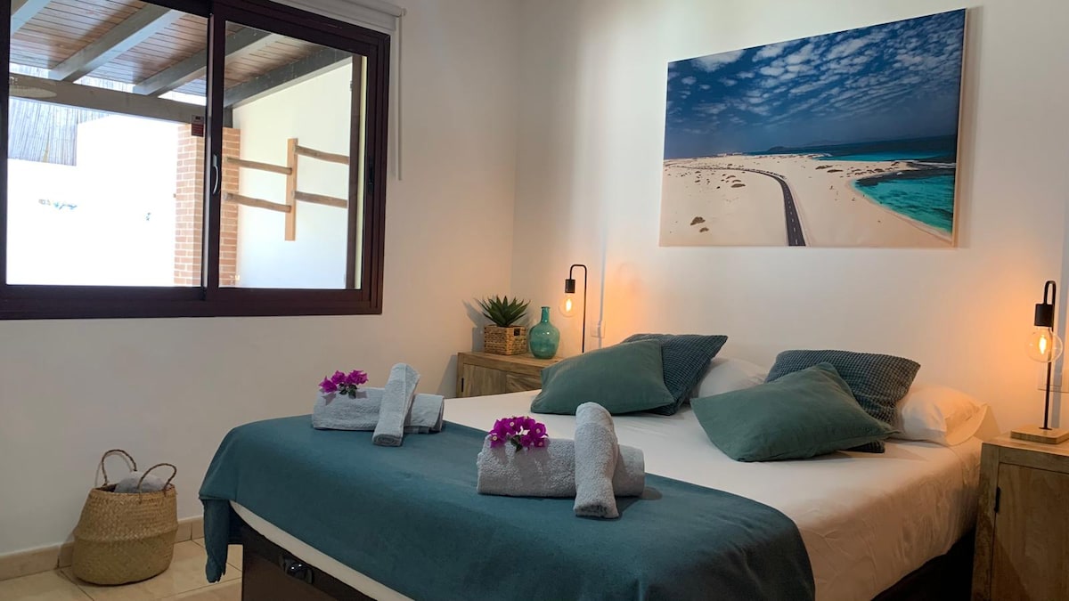 Experience the neuroarchitecture of this bioclimatic loft. Beach, ocean views, and fiber optic. 100 meters from Corralejo beach, we have created a natural habitat with views of the sea, Lobos, and Lanzarote. The design, based on the local climate, provides thermal comfort by taking advantage of environmental sources, as well as an aesthetic integration with the environment. All the necessary equipment in a quiet and residential environment, with nearby services (a few meters away and on foot).