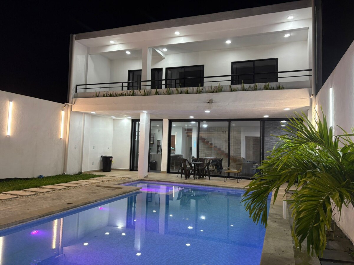 Disfruta del encanto moderno de esta Villa Amelia que cuenta con todos los servicios como alberca privada e iluminada, cocina completa, habitaciones con baño y 2 camas matrimoniales, aire acondicionado, tv, asador, lista para disfrutar de un estancia de tranquilidad y gran ambiente de vacaciones.
