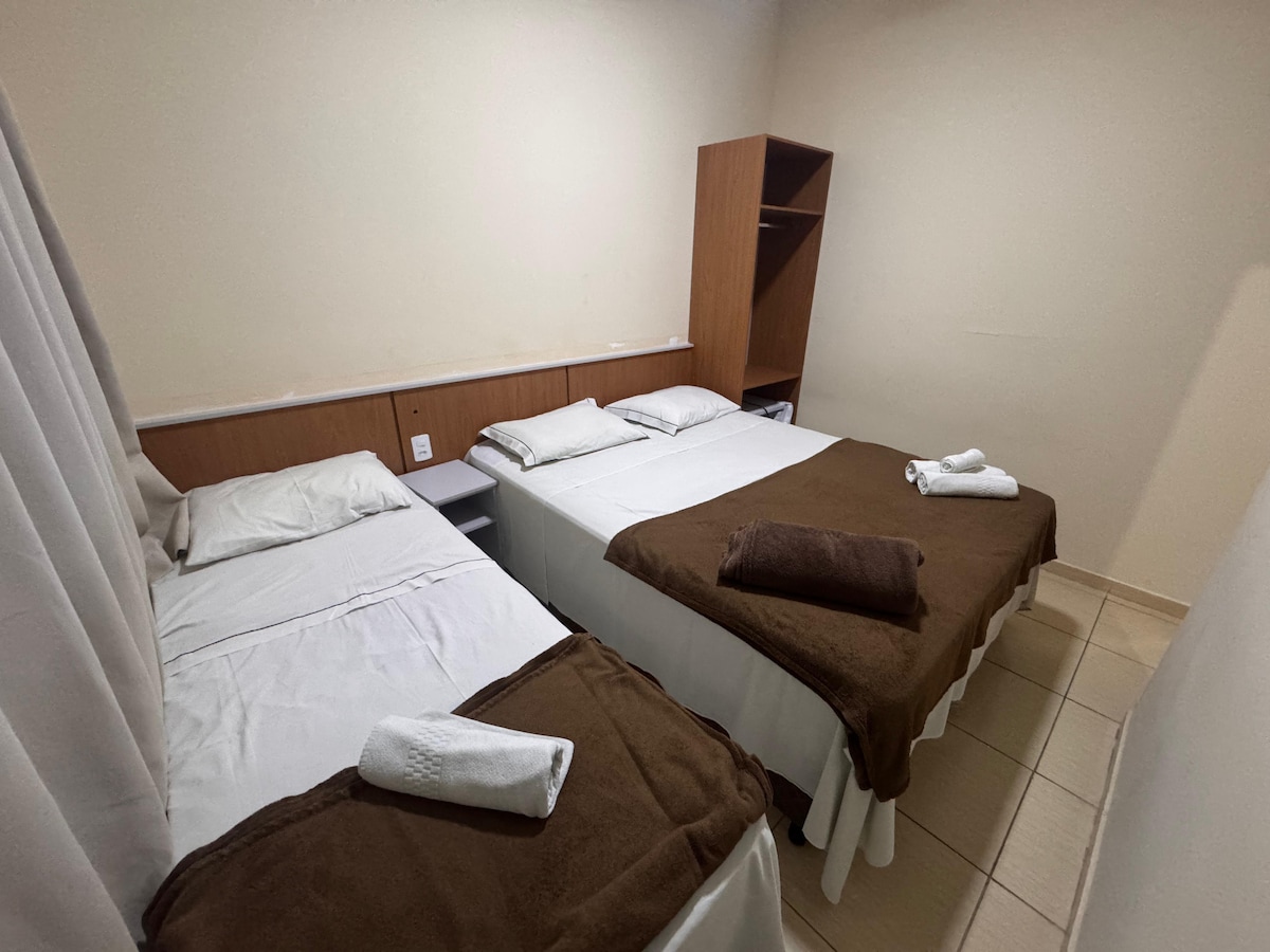 Bem-vindo ao Hotel Santa Gianna, onde cada detalhe foi pensado para o seu conforto! Hospede-se em nosso quarto para duas pessoas, com opção de cama de casal ou uma casal e uma de solteiro, banheiro privativo, ar-condicionado, frigobar e um delicioso café da manhã completo. Além disso, oferecemos portaria 24 horas, garantindo segurança e praticidade. Reserve agora e desfrute de uma estadia acolhedora e inesquecível!te-se com este lugar para ficar.