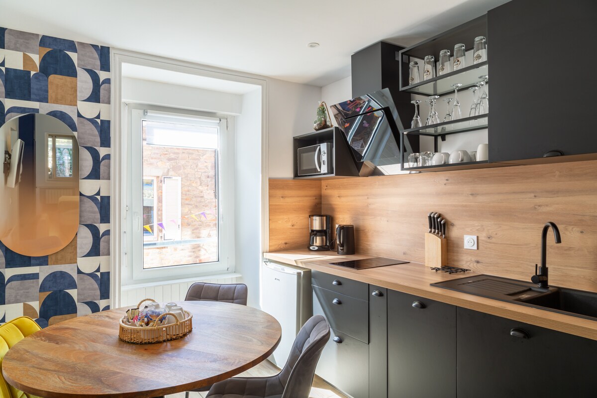 Welcome to our old stone house! This property is a former farm, built in the 19th century, 2 km from the sea. The small house was fully renovated in 2021. Here you will enjoy: Wood stove in fireplace, Chinese-style living room and fully equipped kitchen, Tatami bedroom and bathroom upstairs, Exclusive entrance and parking (free).