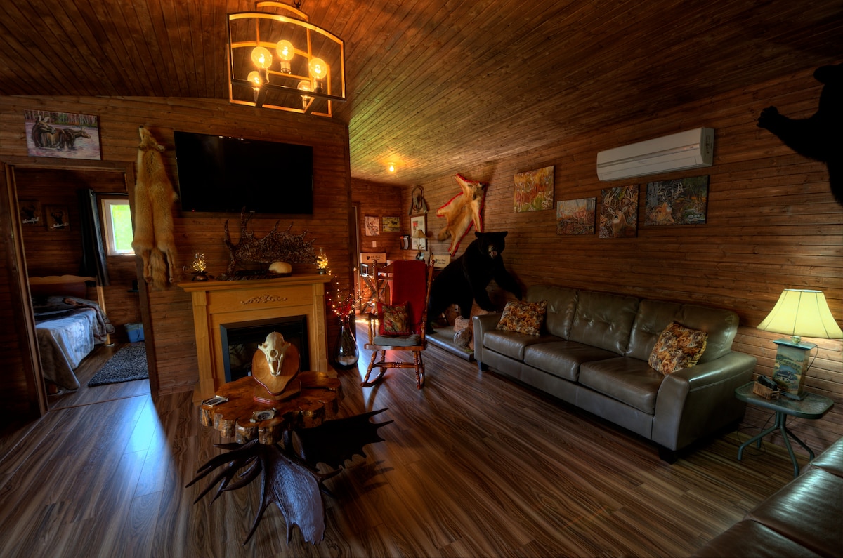 The Loon's Refuge Rustic chalet, refuge style. Located 2 km into the forest, isolated, quiet, without electricity, without internet or running water. Perfect for a healing experience in the heart of nature! Canoe, hiking trails in private forest with monumental sculptures. Wood stove, one bedroom, two bunk beds and a dry toilet outside. An SUV or van is required to get to the site, otherwise we offer a round-trip shuttle service.