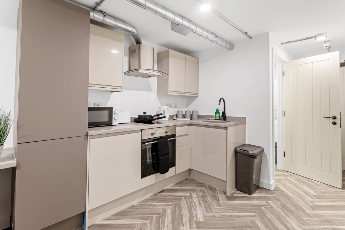 Prime City Centre location, right next to the train station. The apartment is located only a 3 minute walk from Nottingham town centre shops, bars and restaurants. Both Nottingham Forest and Notts County Football Stadiums, Trent Bridge Cricket Ground and the Capital Arena are all within easy walking distance. The apartment comes with everything you need from a home-from-home. Digital locks give complete flexibility for arrival and check out, reducing the demand to arrive at a certain time.
