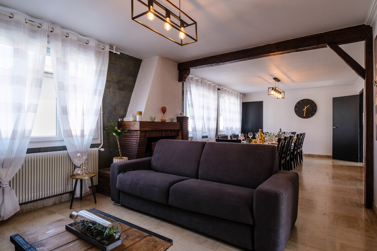 House of a fully renovated old farmhouse. Excellent geographical location, 14 km from Châlons en Champagne, 18 km from Vitry le François, 50 km from Lac du Der, 60 km from Reims and Epernay. 1 hr 15 min from Paris by TGV and 2 hrs by car. Accessible to people with disabilities and reduced mobility. Possibility of hosting receptions for up to 15 people. Fully equipped kitchen (dishwasher, microwave, oven, induction cooktop, freezer...)