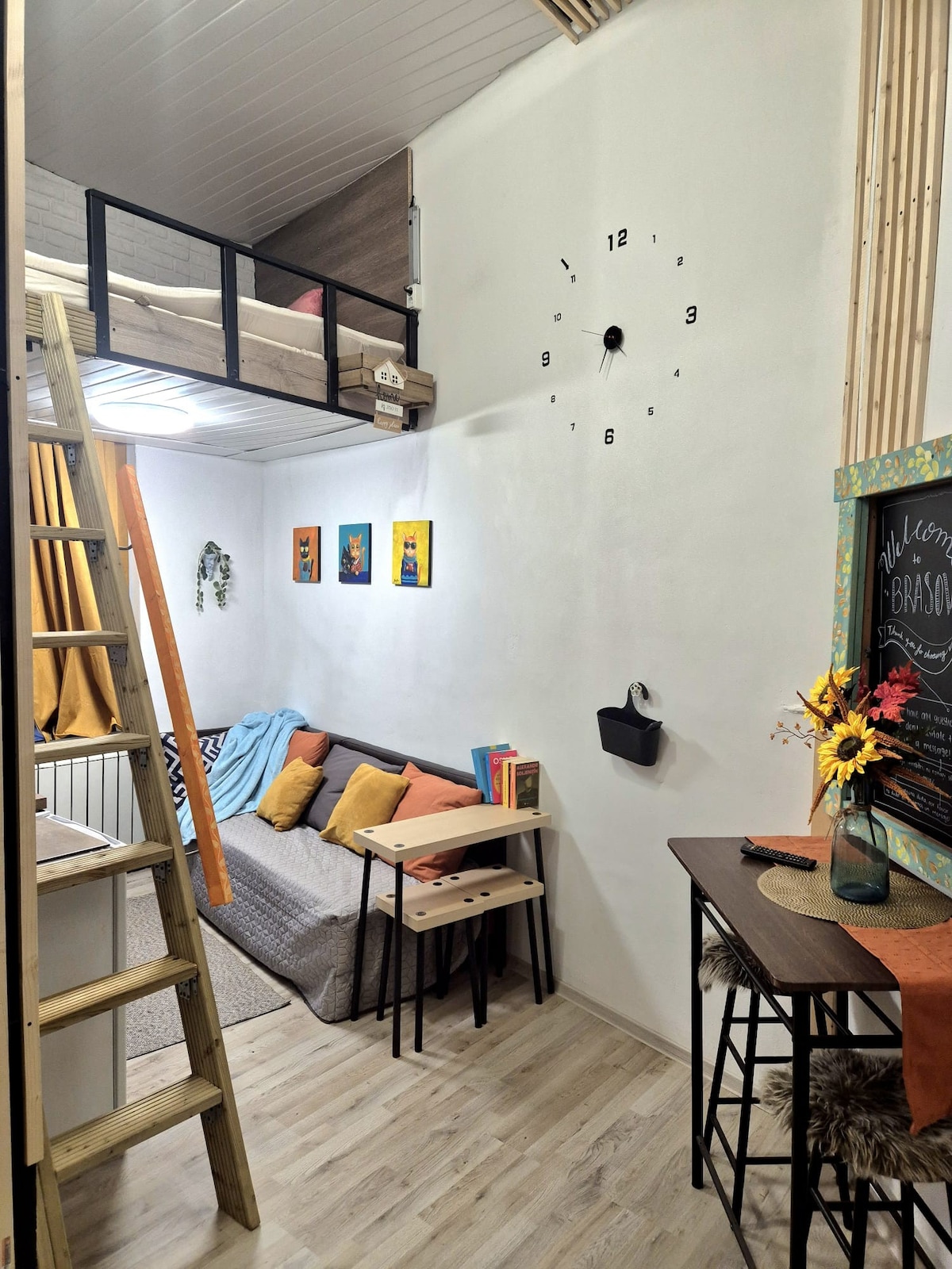 Petreceți-vă sejurul într-un apartament de tip loft, modern, ultracentral, situat fix în inima Brașovului. Acest spațiu elegant cu pereți înalți oferă confort și stil, perfect pentru o ședere relaxantă. Dotat cu toate facilitățile moderne, și lumină naturală din abundență, vei fi la doar câțiva pași de principalele atracții turistice din Centrul Brașovului: restaurante, cafenele, muzee. Ideal pentru cupluri sau călători de afaceri, pentru o experiență de neuitat la Orașul de la poalele Tâmpei.