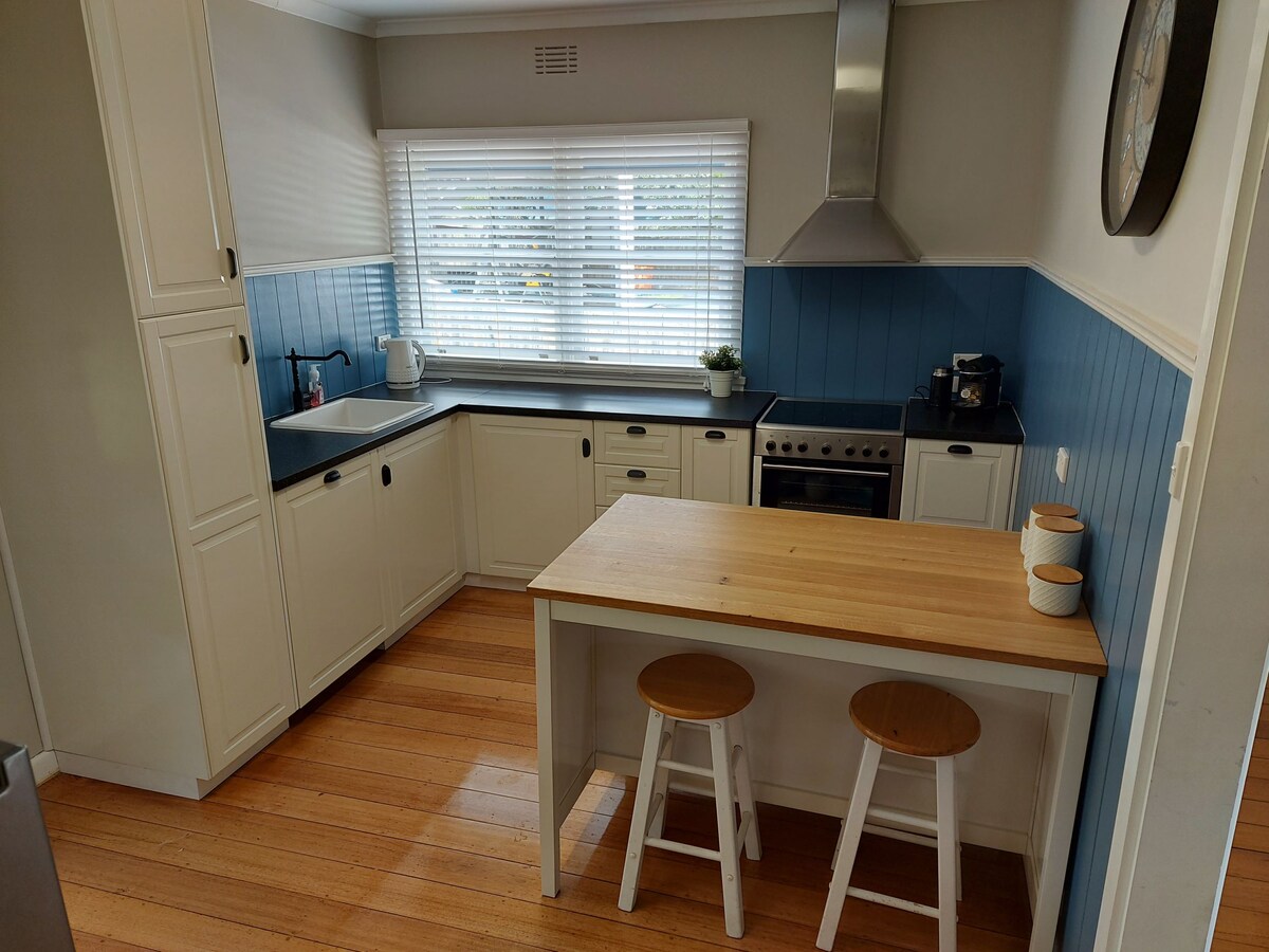 Family Foreshore Beach House. Tucked at the end of a quiet culdesac this relaxed foreshore hideaway is made for barefoot holidays. Wander to rock pools, play on the lawn, watch wallabies graze and kookaburras laugh in the trees or gather on the deck as the BBQ sizzles and waves roll in. Two living areas give families space to spread out while cosy bedrooms invite slow mornings with sea views. A fully equipped kitchen makes longer stays and entertaining a breeze your island home away from home